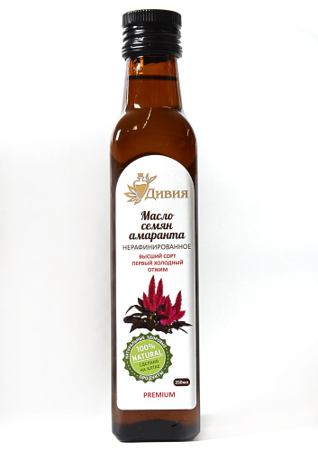- В амарантовом масле содержатся жиры (омега-3, омега-6 и омега-9), которые необходимы при формировании органических тканей, для поддержания иммунитета и способствуют работе мозга. Так же в амарантовом масле содержится сквален. Этот элемент необходим нашему организму для обеспечения здорового внешнего вида и для здоровья внутренних органов человека.